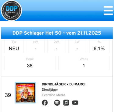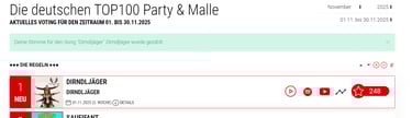 Unser #1 Song "Dirndljäger" geht steil !!!